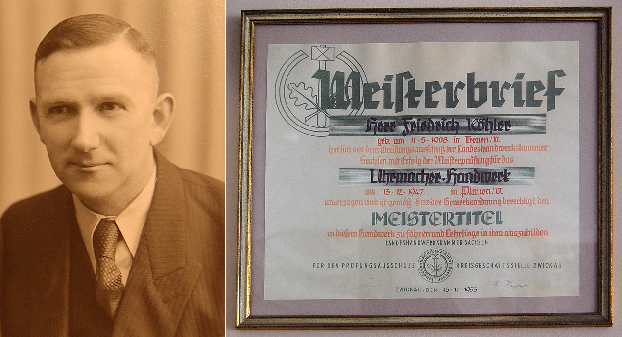 Das Handwerk hatte er bei seinem Vater Friedrich Köhler gelernt, der 1928 in Bergen im Vogtland sein Uhrmachergeschäft eröffnete und vier seiner fünf Kinder zum Uhrmacher ausbildete, darunter auch Sohn Horst.