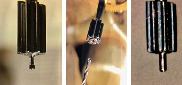 - Polieren der Radzapfen, der Ankerflächen und der Hebel